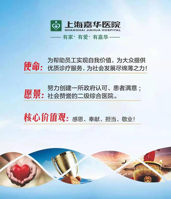 上海嘉华医院始建于2005年,现占地面积20亩地,建筑面积2万余平方米,是一家“集医疗、健康体检、预防保健、康复、护理”于一体的医保定点二级规模医院,核定床位460张,设有内科(呼吸内科/消化内科/心血管内科/老年病专业/神经内科等)、外科(普外科/泌尿外科/骨科等)、妇科(妇科专业/生殖健康与不孕症专业/计划生育专业)、中医馆(中医内科/针灸推拿专业/中医肛肠专业)、康复医学科、老年护理专业、健康体检中心、皮肤科、五官科、口腔科、眼科(青少年近视防治中心)等。